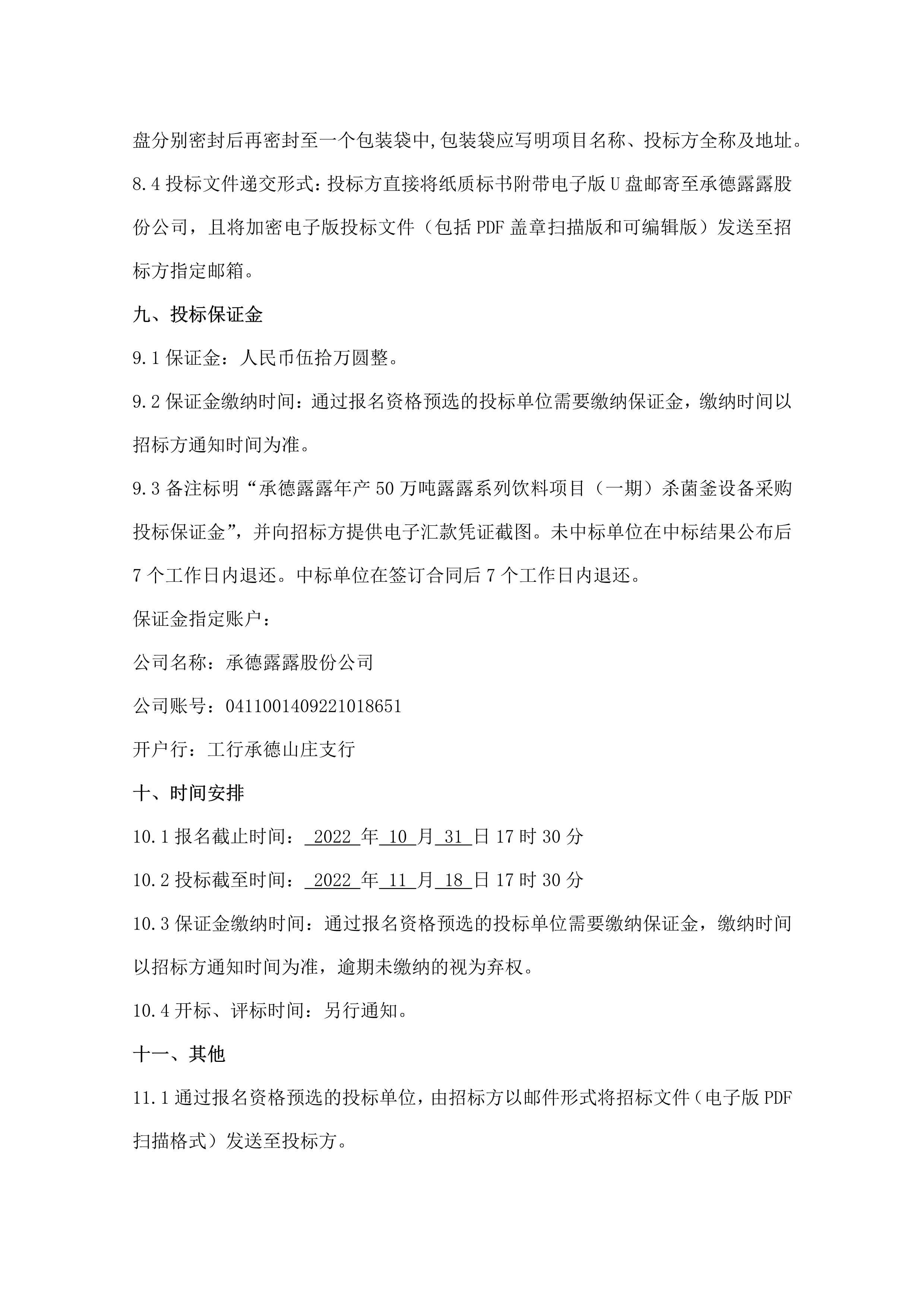 承德露露股份公司年產50萬噸露露系列飲料項目(一期)殺菌釜設備采購招標公告
