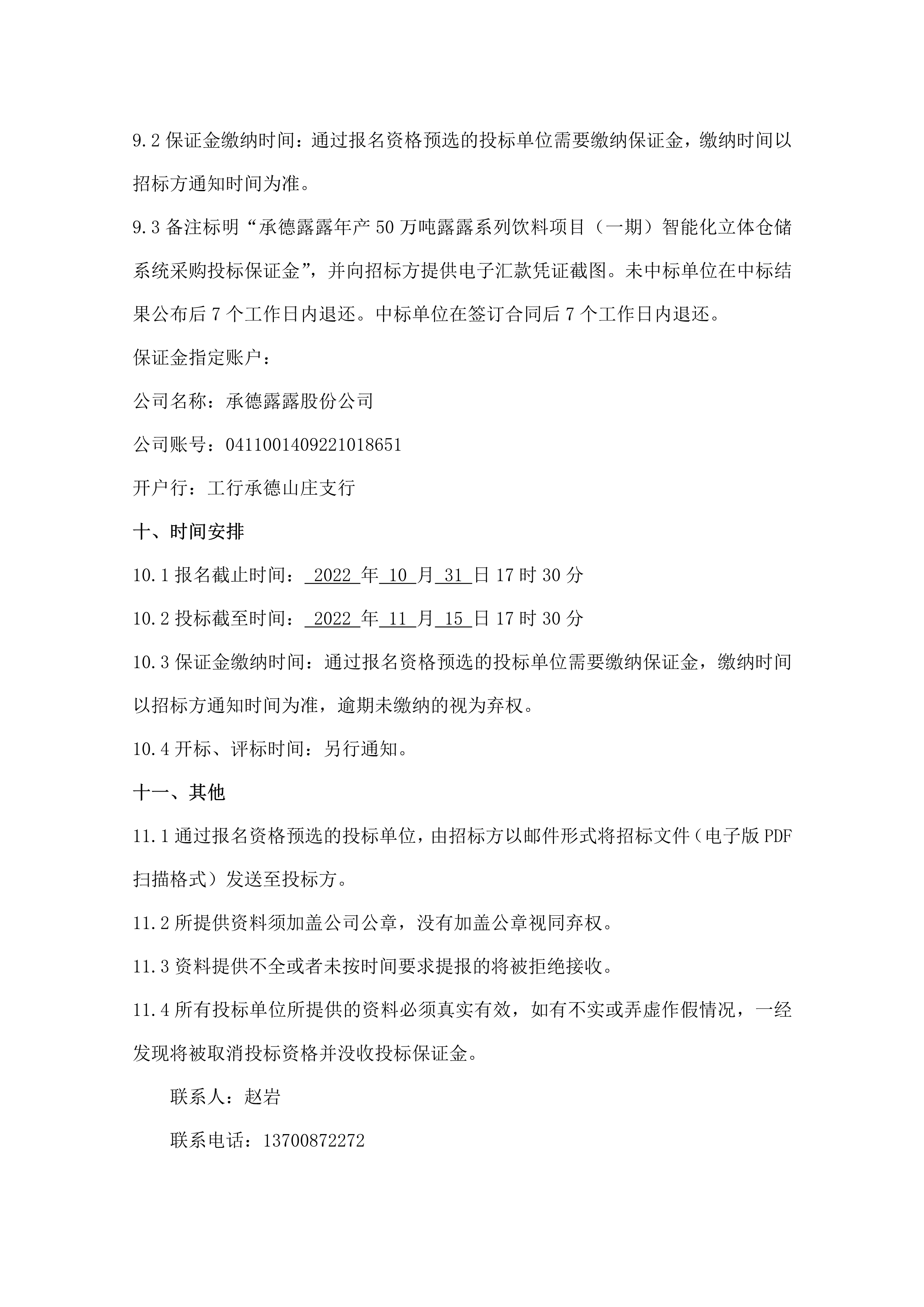 承德露露股份公司年產50萬噸露露系列飲料項目(一期)智能化立體倉儲系統招標公告